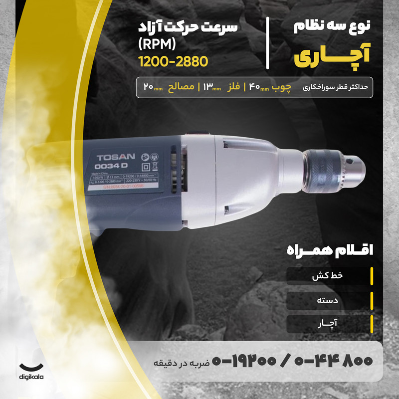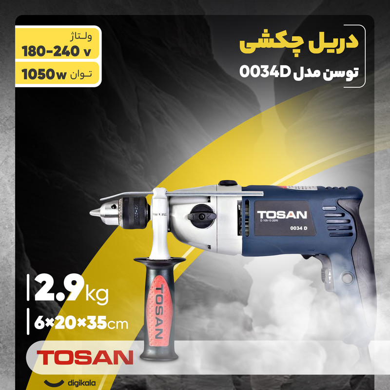 خرید اینترنتی دریل چکشی توسن مدل 0034D به همراه مقایسه، بررسی مشخصات و لیست قیمت امروز در فروشگاه رنگ و ابزار سلامت