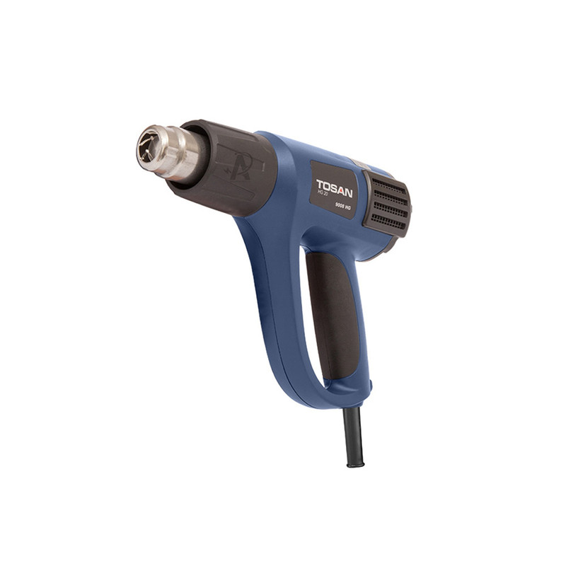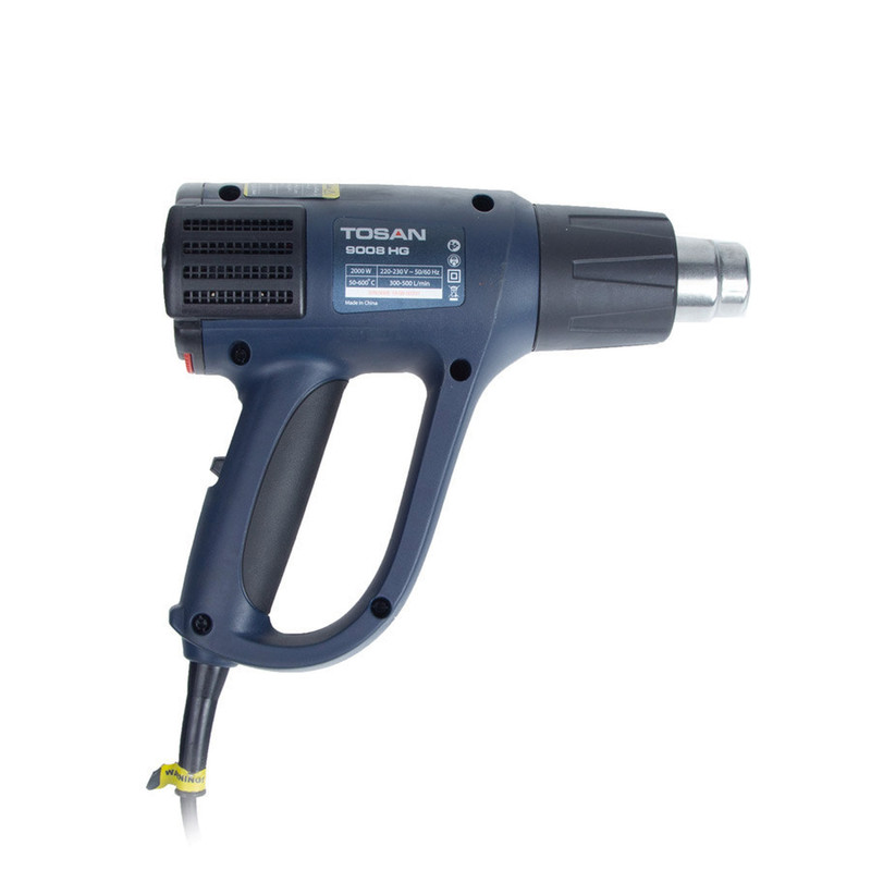 سشوار صنعتی مدل 9008HG یک دستگاه دمنده است. این محصول که با برندی ایرانی عرضه میشود، موتور قدرتمندی دارد. در این دستگاه قابلیت تنظیم فشار دمش باد و میزان حرارت وجود دارد. شکل ظاهری و وزن مناسب محصول، استفاده از این دستگاه را آسانتر کرده است. مدل 9008HG یک از سشوارهای صنعتی تولیدشده توسط شرکت «توسن» (Tosan) است. این دستگاه قابلیت دمش هوای گرم و معمولی را دارد. یک موتور 2000 واتی عمل دمش را انجام میدهد و یک المنت که بین مسیر دمش قرارگرفته، باعث گرم شدن باد خروجی میشود. یک کلید سه حالته، روی دستهی محصول قرار دارد. با استفاده از این کلید نوع باد خروجی (گرم یا معمولی) و میزان فشار باد خروجی مشخص میشود. در حالت اول باد معمولی با فشار 300 لیتربردقیقه از نازل دستگاه خارج میشود. حالت دوم مشابه حالت اول است ولی باد خروجی گرم میرود. در حالت سوم هم باد گرم با فشار 500 لیتربردقیقه در اختیار کاربر قرار میگیرد. یک کلید گردان در بالای دستهی محصول قرار دارد که به کمک آن میتوانید دمای هوای خروجی از دستگاه را بین 50 تا 600 درجهی سانتیگراد تنظیم کنید. البته تغییرات دما، در صورتی است که کلید سه حالته، روی حالت 2 یا 3 باشد. شکل تفنگی دستگاه در کنار وزن 900 گرمی محصول، باعث میشوند تا کاربر بهراحتی از سشوار صنعتی مدل 9008HG استفاده کند. از سشوارهای صنعتی در شغلهای مختلفی مانند صنایع بستهبندی استفاده میشود. در صنایع برق و برای جمع شدن وارنیشهای حرارتی هم از سشوارهای صنعتی استفاده میکنند. توسن سشوار مدل 9008HG را برای استفاده در صنایع مختلف تولید کرده است. این سشوار دارای توان 2000 وات است. در این محصول قابلیت تنظیم درجهی حرارت و فشار باد وجود دارد.