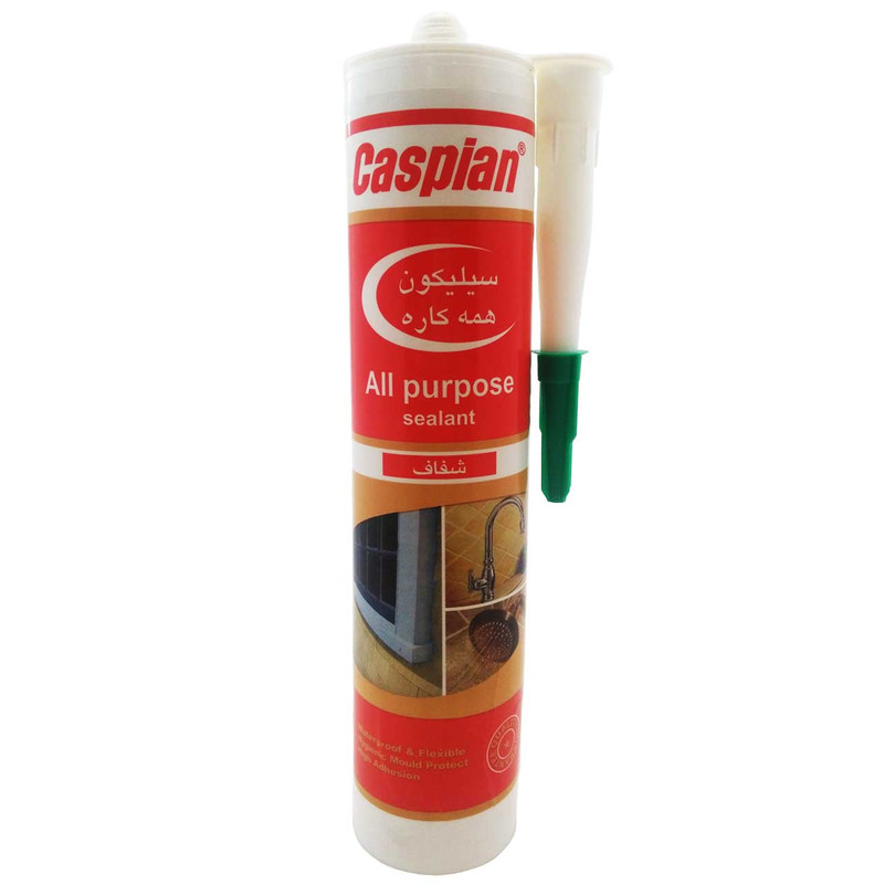 یکی از راههای گرفتن درزها و پرکردن فضاهای خالی بین سطوح استفاده از درزگیرها است. این محصولات انواع مختلفی دارند که برخی از آنها خواص مشابهی مانند چسبها دارند. محصول فوق نیز اینگونه بوده و نوعی چسب درزگیر محسوب میشود. این چسب را شرکت «کاسپین» (Caspian) تولید میکند. این محصول دارای ساختاری سیلیکونی بوده و قادر است فضاهای خالی پنجره، شیشه، آینه، آلومینیوم، کاشی، سرویس های بهداشتی و سرویس های آشپزخانه، ساخت پانلهای فشرده، نمای شیشه ای بیرون ساختمان، سطوح صیقلی و غیره را چسبانده و درزگیری کند. از ویژگیهای این محصول میتوان به مقاومت خوب آن، چسبندگی و دوام، رنگ پذیری و ضد قارچ بودن آن اشاره کرد. این چسب درزگیر دربرابر دما و نور پایداری مناسبی دارد و ضد آب است. این محصول دربرابر امواج قدرتمند اشعهی فرابنفش مقاوم بوده و تغییرات دمایی در بازهی منفی 20 تا مثبت 120 درجهی سانتیگراد اثری روی کیفیت آن نمیگذارد. شرکت کاسپین این چسب درزگیر را بهشکل سیلندری طراحی کرده است. این نوع طراحی موجب شده تا کاربر با تهیهی یک دستگاه چسب سیلندری بتواند بهراحتی از این محصول استفاده نماید. این چسب حجمی 300 میلیلیتری داشته و ساختاری شفاف دارد تا بتوان از آن برای سطوح شفاف استفاده کرد.