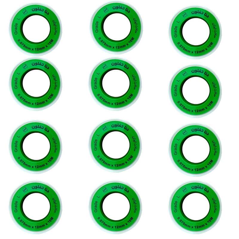 نوار تفلون سبز دنا بسته 12 عددی مناسب برای محل اتصال لوله دارای بهترین کیفیت، مقاوم در برابر آب، بخار، روغن، گاز قابل استفاده برای فلز، لوله کشی، درزگیری انواع اتصالات که نیاز به کیپ شدن دارند مدل استاندارد پلاس این محصول ، مقرون به صرفه و کیفت عالی نیز دارد