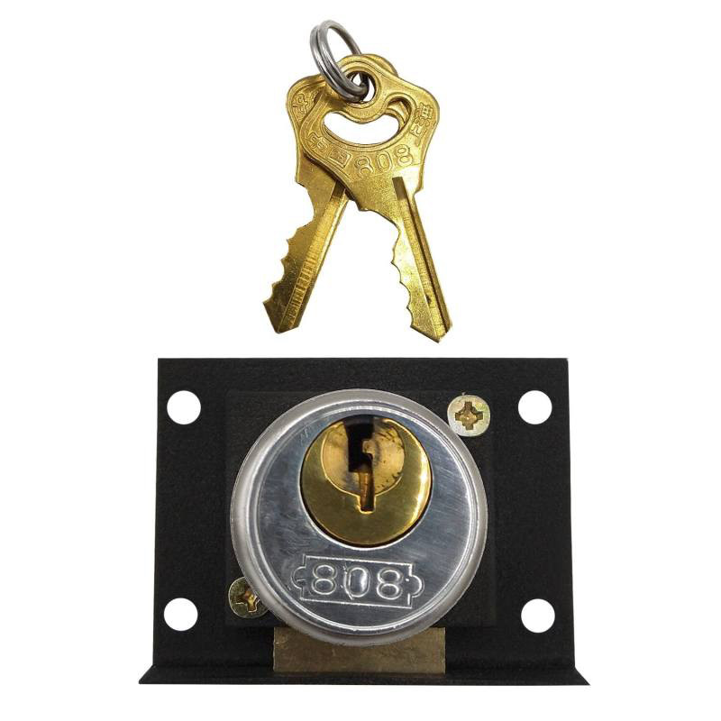 قفل کمدی 808 دارای توپی برنجی و زبانه قفل شونده برنجی می باشد همچنین دارای دارای دو کلید از جنس برنج و صفحه مشکی می باشد .دارای کیفیت مطلوب و مرغوب میباشد .