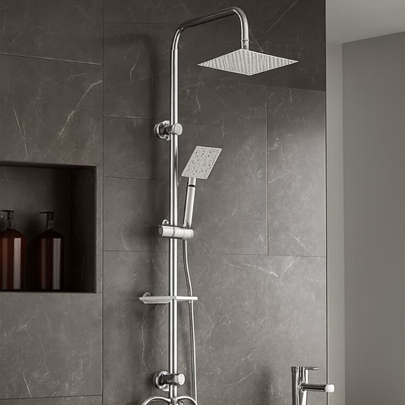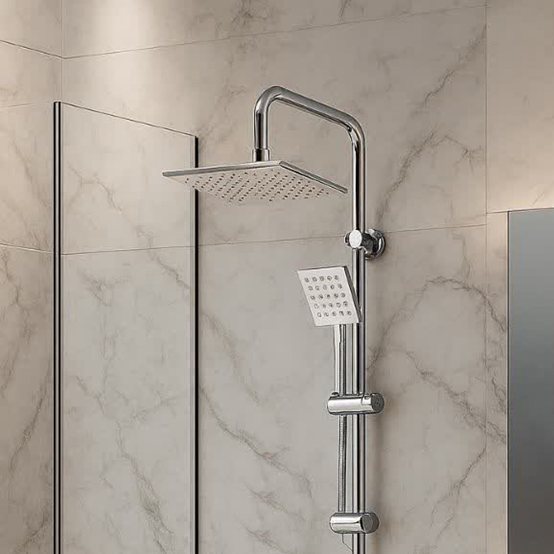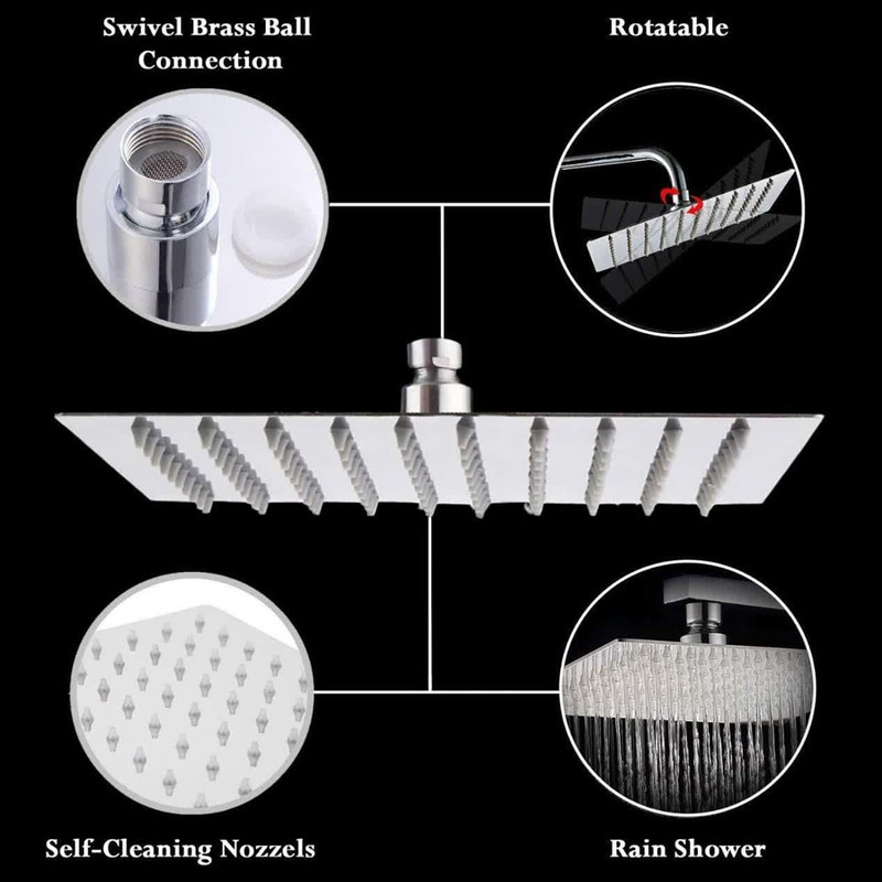 مجهز به منافذ پلیمری که رسوب زدایی را راحت میکند، تعداد زیاد نازل اب جهت پخش مناسب آب، دارای جاصابونی، شلنگ استیل ریزبافت، قابلیت تنظیم ارتفاع گوشی، دارای پیچ و رول پلاک برای نصب