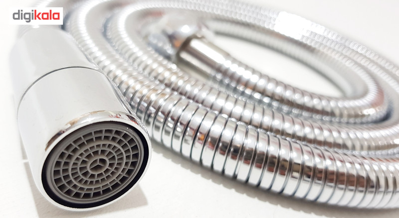 محصول همراه با پایه نگهدارنده شلنگ و سر پیچ وصل به شیر شلنگ ریز بافت با اتصالات برنجی